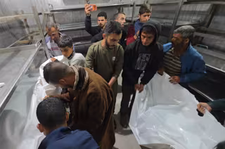 Palestinos en el Hospital Naser de Jan Yunis con los cuerpos de varios muertos por ataques del Ejército de Israel contra la Franja de Gaza pese al alto el fuego en vigor desde el 10 de octubre de 2025 (archivo) - Europa Press/Contacto/Tariq Mohammad
