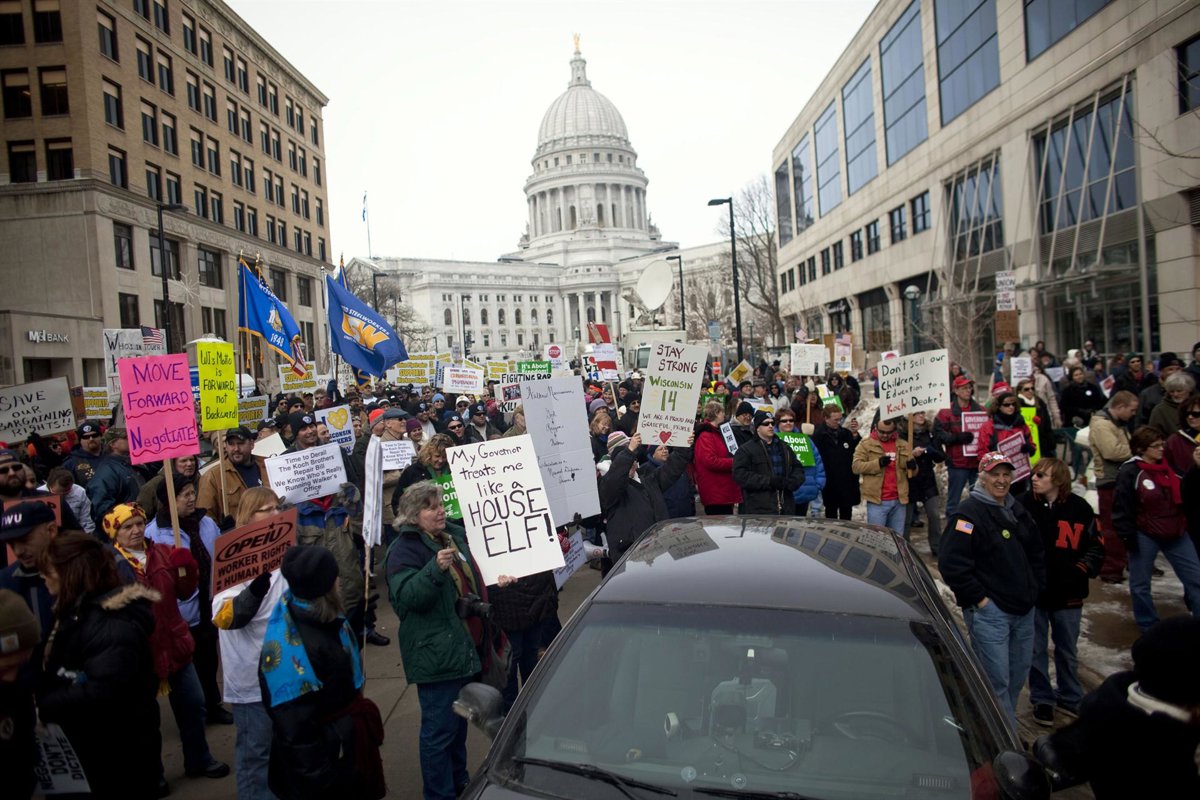 Los manifestantes ven las propuestas como un esfuerzo para debilitar el movimiento sindical. Otros estados que están considerando medidas similares son Ohio, Tennessee, Idaho, Indiana, Iowa y Kansas. Varios miles de personas se concentraron en Nueva York y Los Ángeles, mientras que cerca de mil personas salieron a las calles en Chicago, Denver y Colombus (Ohio). Varios miles más protestaron en Austin (Texas) y cerca de cien lo hicieron en Miami.