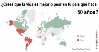 Así, el centro señala que la situación actual de la economía es un 'fuerte indicador' para predecir lo que van a responder las personas, incluso cuando se controlan otros factores como salario, educación, género o edad. Los países en los que la gente tiene opiniones positivas sobre la situación económica tienden a ser también los más optimistas a la hora de calificar el cambio producido en los últimos 50 años.