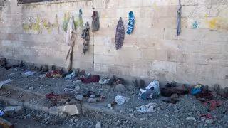 "Mi hijo resultó alcanzado en la rodilla, iba gateando por la calle", rememora Shukri. "Yo también tenía una herida en la pierna, pero era menor", añade. "Se quedó ahí tumbado, sangrando y murió hacia las cuatro de la tarde, se desangró hasta morir", recuerda.