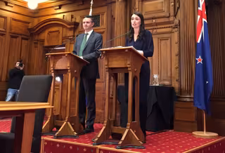 La primera ministra de Nueva Zelanda, Jacinda Ardern, junto al ministro para Cambio Climático y colíder de Los Verdes, James Shaw - REUTERS / REUTERS STAFF - Archivo
