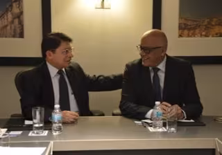 Archivo - El ministro de Exteriores de Nicaragua, Denis Moncada, y el vicepresidente venezolano Jorge Rodríguez - TWITTER DEL MINISTERIO DE EXTERIORES DE VENEZUELA