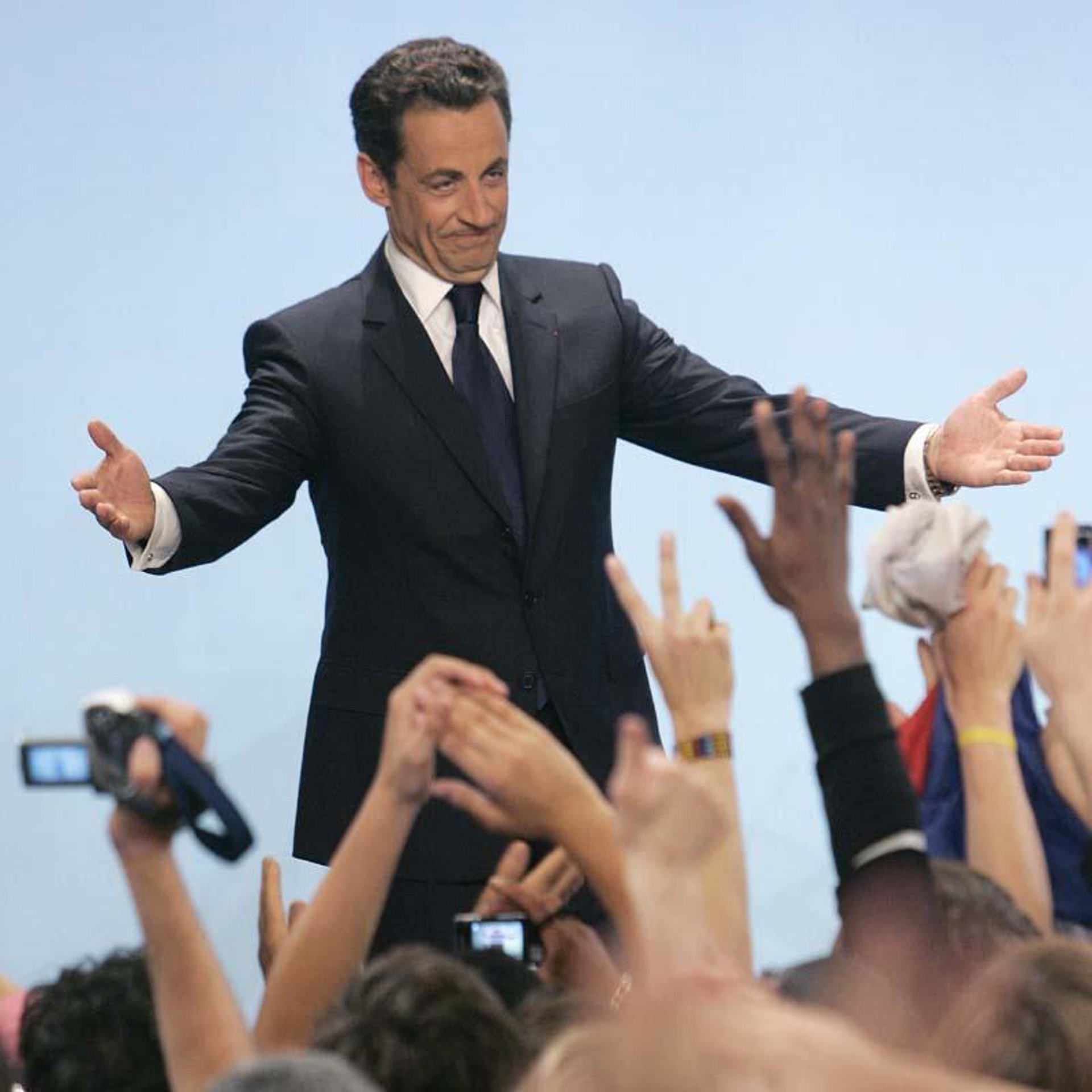 Sarkozy, rodeado por una multitud de periodistas motorizados, llegó en coche a la sala Gaveau de París, donde le esperaban cientos de seguidores eufóricos por la victoria electoral, antes de acudir a la Plaza de la Concordia para mostrarse como nuevo presidente de Francia. "Amo a Francia como se ama a una querida persona que me ha dado todo" fueron las primeras palabras del exultante líder de la UMP, que prometió "devolverle a Francia lo que me ha dado". No se olvidó de dedicarle una parte de su "pensamiento" a "la señora Royal" y las "ideas que tantos franceses han reconocido", pues "hay que amar a todos los franceses".