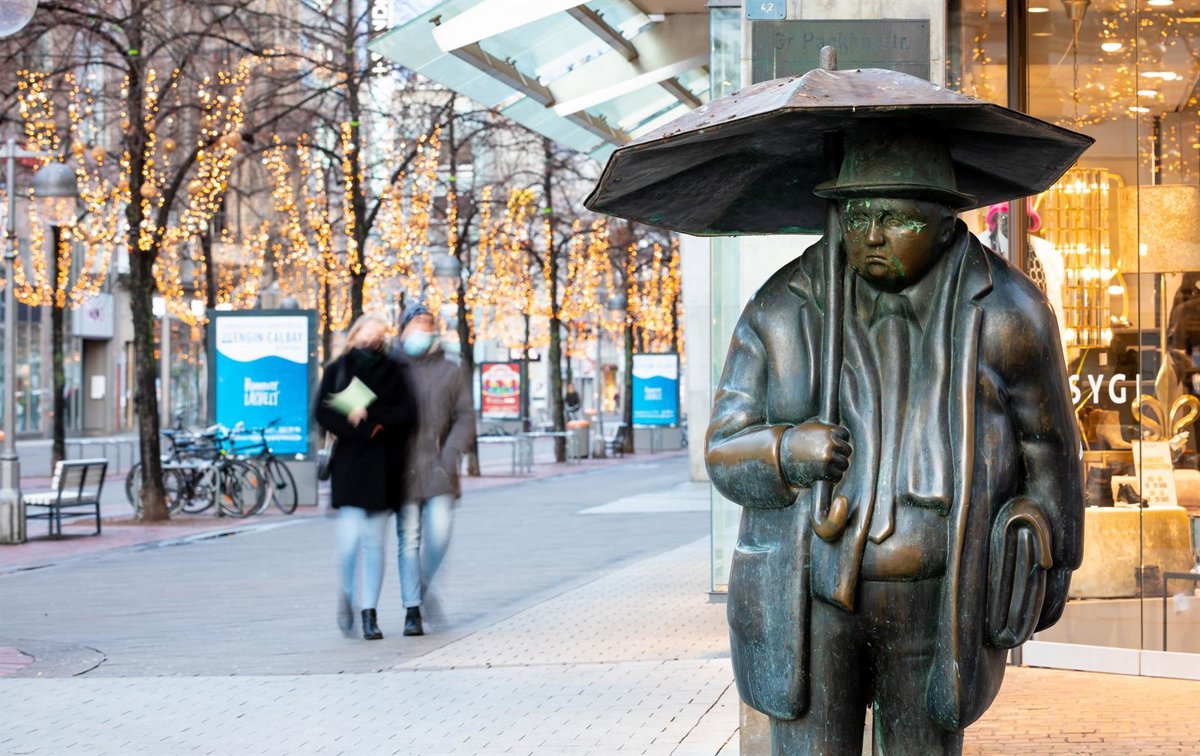 Dos personas con mascarilla por el coronavirus en el centro de Hanóver, Alemania - Moritz Frankenberg/dpa