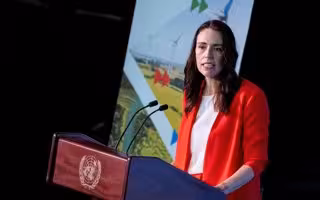 FILED - 23 September 2019, US, New York: Jacinda Ardern, Prime Minister of New Zealand, addresses participants at the UN Climate Change Conference at the United Nations. Every person entering New Zealand from Sunday will have to self-isolate for 14 days, - Kay Nietfeld/dpa - Archivo