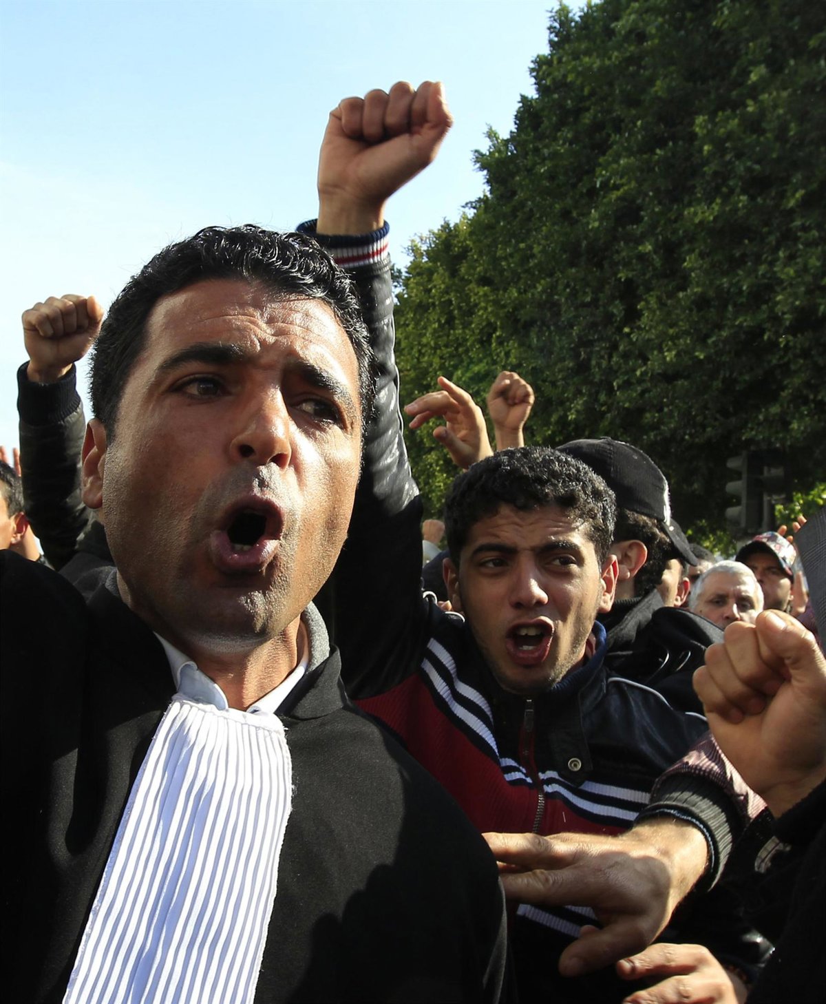 Un centenar de tunecinos se manifestaron en la capital, Túnez, para protestar contra el nuevo Gobierno interino constituido tras el derrocamiento del ex presidente Zine bin Abidine.