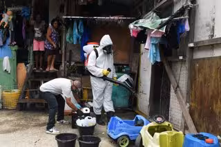 Un trabajador sanitario realiza labores de desinfección en la favela de Santa Marta, en Rio de Janeiro, para evitar posibles brotes en uno de los estados más fectados por el Covid-19 en Brasil. - Fabio Teixeira