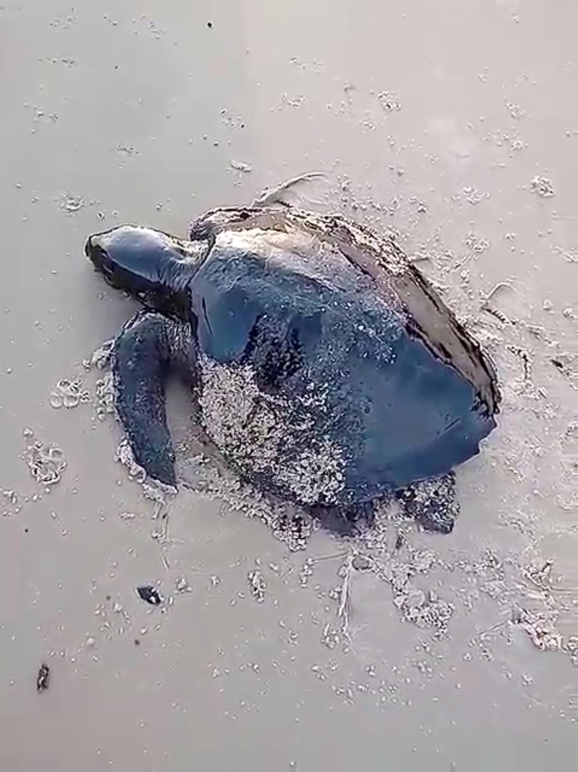 Una tortuga marina cubierta de petróleo. - VIA REUTERS / SOCIAL MEDIA