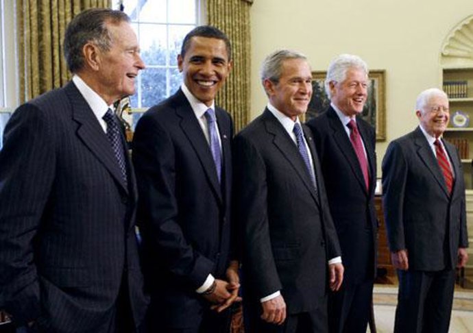La última vez que se produjo un encuentro así fue el 8 de octubre de 1981, cuando Richard Nixon, Gerald Ford y Jimmy Carter acudieron a la Casa Blanca convocados por Ronald Reagan antes de viajar juntos a El Cairo para participar en los funerales de Estado del presidente de Egipto, Anwar Sadat.