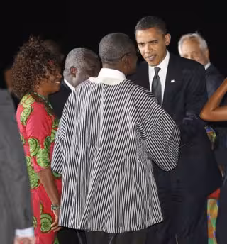El inquilino de la Casa Blanca, su esposa y sus dos hijas fueron acogidos en el aeropuerto de Accra por el presidente John Atta Mills, y por los dignatarios locales, vestidos con coloridos trajes tradicionales. Con esta visita Obama se ha convertido en el tercer presidente estadounidense en viajar a Ghana, pero a diferencia de los ex mandatarios Bill Clinton y George W. Bush, no lo ha hecho dentro de una gira por el continente africano.