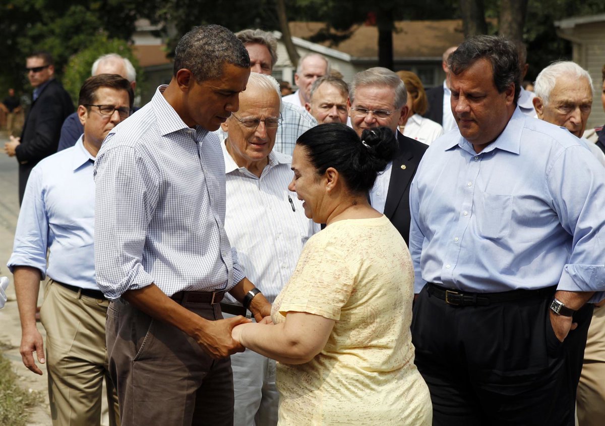 Obama ha llegado a la ciudad de Paterson, una localidad de 150.000 personas de mayoría obrera que ha sido una de las más afectadas por el temporal, acompañado por el gobernador de Nueva Jersey, Chris Christie, un republicano conocido por su defensa de los recortes del gasto público.