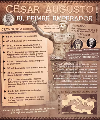 primer emperador de Roma, Octavio Augusto, sucesor de Julio César y que tuvo un papel preeminente en la integración de Hispania dentro del Imperio, gracias al respeto a las costumbres y tradiciones del pueblo hispano.