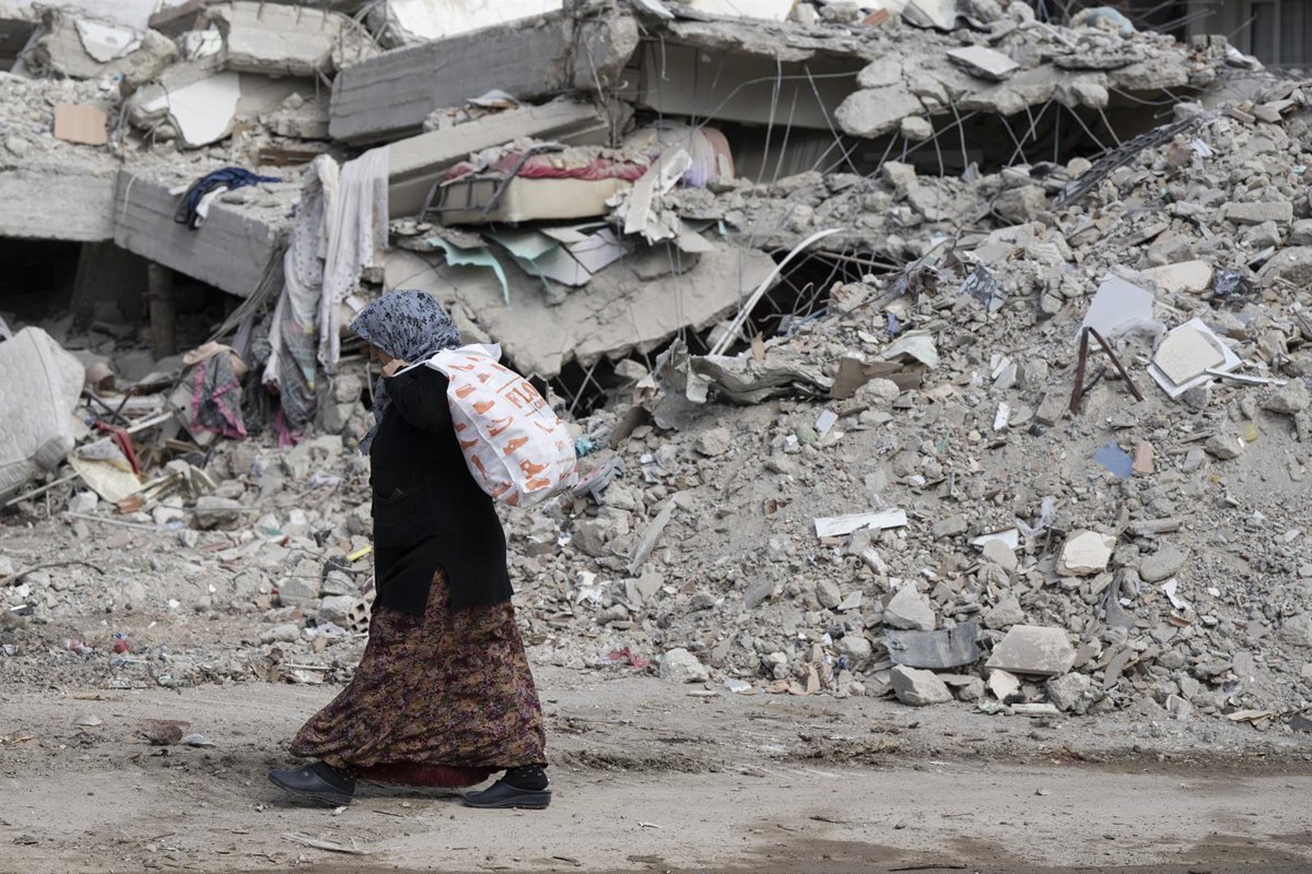 Una mujer pasa ante los escombros de un edificio destruido por el terremoto en Kirikhan, Turquía - Boris Roessler/dpa