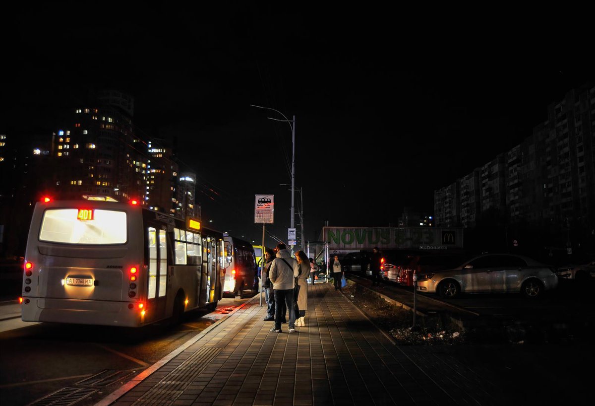 Personas paradas en una parada de transporte público en un Kiev sin luz. - Europa Press/Contacto/Sergei Chuzavkov