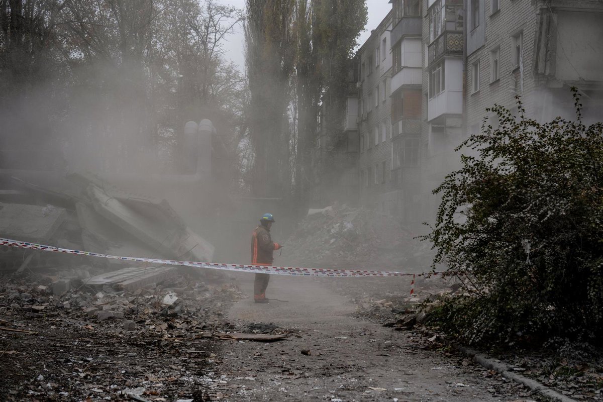 Archivo - Un agente de rescate frente a un edificio residencial dañado tras un ataque con misiles rusos contra un edificio residencial en Nikolaev, Ucrania - Ashley Chan/SOPA Images via ZUMA / DPA - Archivo