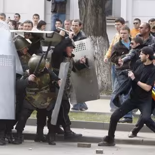 Unos 10.000 manifestantes de la oposición irrumpieron el martes en el edificio que alberga el Parlamento moldavo y tomaron la oficina del presidente, Vladimir Voronin, en protesta por la victoria del Partido Comunista en las elecciones parlamentarias del domingo. Como consecuencia de los enfrentamientos, cerca de 170 agentes antidisturbios y 100 activistas resultaron heridos.