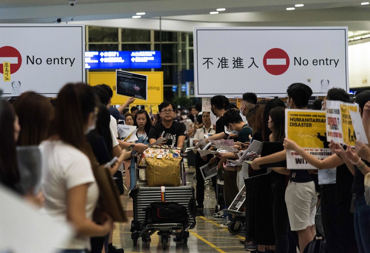 Los manifestantes han llevado al aeropuerto las reivindicaciones que desde hace más de dos meses han sacado a las calles de Hong Kong a miles de personas, entre ellas la retirada de una polémica ley que autoriza la extradición de sospechosos a la China continental.