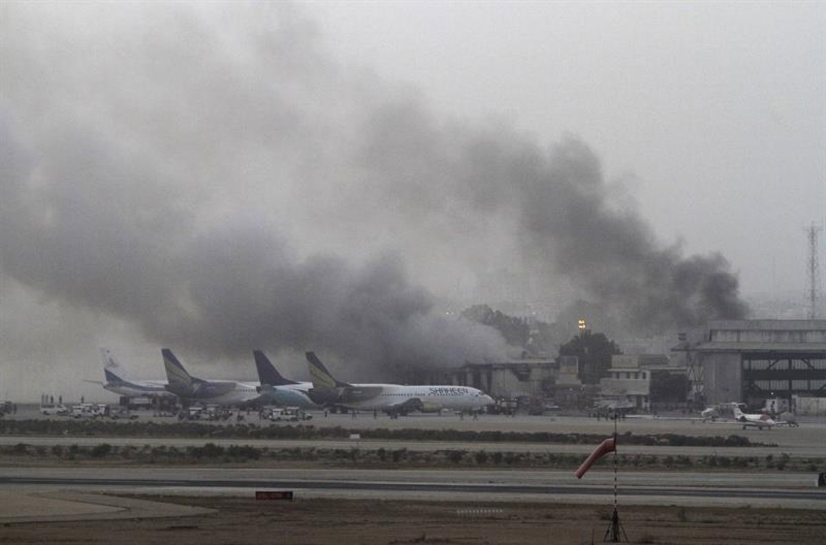 Los asaltantes irrumpieron en el aeropuerto de Karachi, una ciudad de 18 millones de habitantes, armados con chalecos con explosivos, granadas y lanzacohetes. Hacia las 8:15 horas se han escuchado nuevamente disparos, pero han remitido poco después.