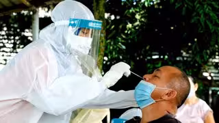 Una trabajadora sanitaria toma una muestra a un hombre para un test de coronavirus en la ciudad malasia de Sandakan - Arjasneh Ahmad/BERNAMA/dpa