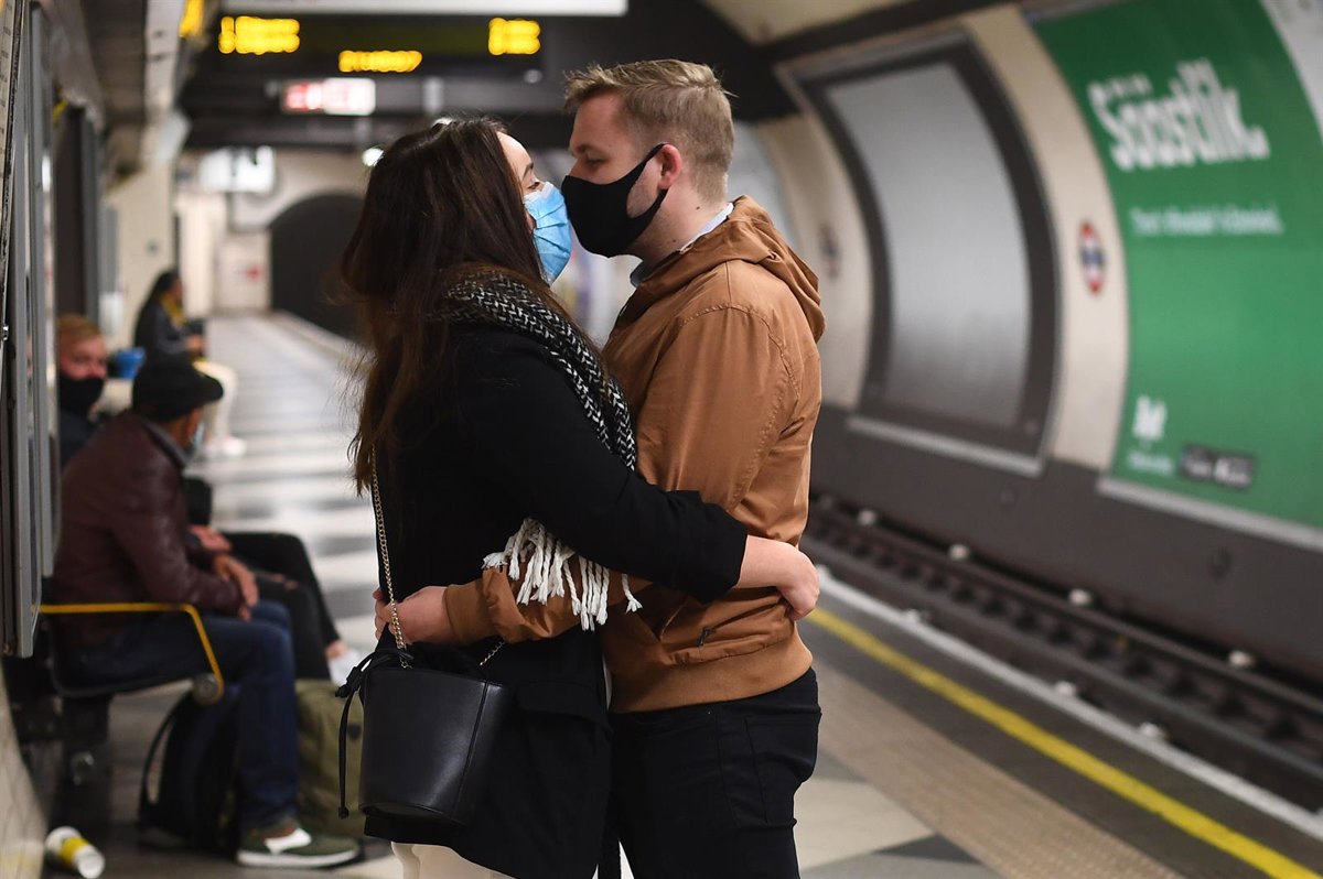 Una pareja con mascarillas en el metro de Londres - Victoria Jones/PA Wire/dpa