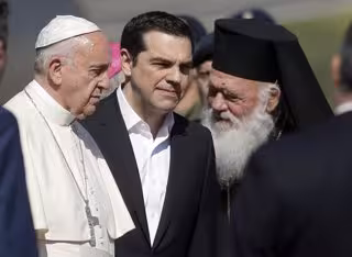 El Papa ha sido recibido por el primer ministro Alexis Tsipras y saludado por Bartolomé, Patriarca Ecuménico de Constantinopla, Jerónimo, arzobispo de Atenas y de toda Grecia y a continuación por el obispo Fragkiskos Papamanolis, presidente de la Conferencia Episcopal Griega, según la agenda facilitada por el director de la oficina de prensa de la Santa Sede, Federico Lombardi.