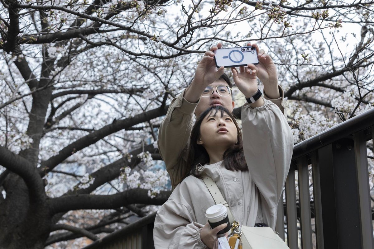Archivo - Una pareja toma fotos de los cerezos en flor en Japón - Europa Press/Contacto/Stanislav Kogiku - Archivo