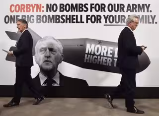 El cartel muestra una imagen de Corbyn delante de una bomba junto a la que dice "Más débito, mayores impuestos" y en la que se advierte a los votantes de que bajo el mandato del Partido Laborista, "No habrá bombas para el Ejército. Una gran bomba para su familia". La imagen hace referencia a un cartel utilizado por los conservadores en la campaña electoral de 1992 en el que presentó la imagen de una bomba bajo el mensaje "bomba tributaria laborista".