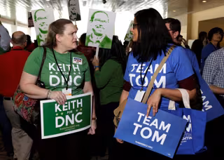 Los candidatos a presidir el partido son el exsecretario de Trabajo Tom Perez, reforzado el pasado jueves por el apoyo de Jaime Harrison, de Carolina del Sur, quien ha anunciado que se retira de la competición. Unos días antes, el otro candidato, Keith Ellison, fue respaldado por el presidente del partido en New Hampshire, Ray Buckley, tras anunciar su renuncia.