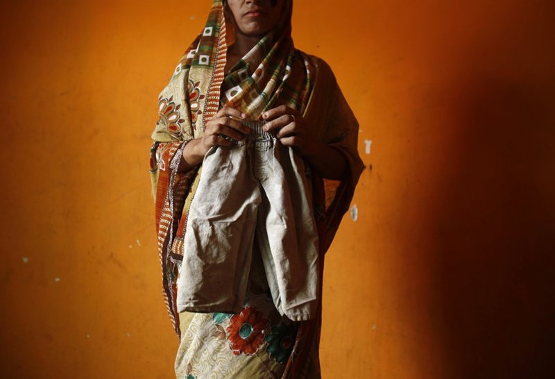 13. Chandravati, de 30 años, posa con los pantalones de su hija desaparecida. Entre el 1 de enero y el 8 de mayo de 2013, se produjeron 725 denuncias de niños desaparecidos en India.