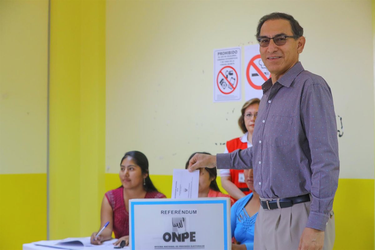 Los peruanos han aprobado con una media de cerca del 80 por ciento las reformas políticas que el presidente, Martín Vizcarra, decidió someter a referéndum para superar la crisis desatada por la caída de su antecesor en el cargo, Pedro Pablo Kuczynski, a excepción de la que proponía volver a un Congreso bicameral.