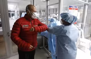 El ministro de Salud de Perú, Víctor Zamora, saluda a un trabajadora con el codo por el coronavirus. - Karel Navarro/Ministerio de Salu / DPA