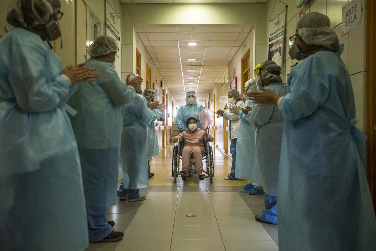 Una joven paciente afectada por coronavirus es aplaudida tras ser dada de alta en hospital de Lima, Perú.