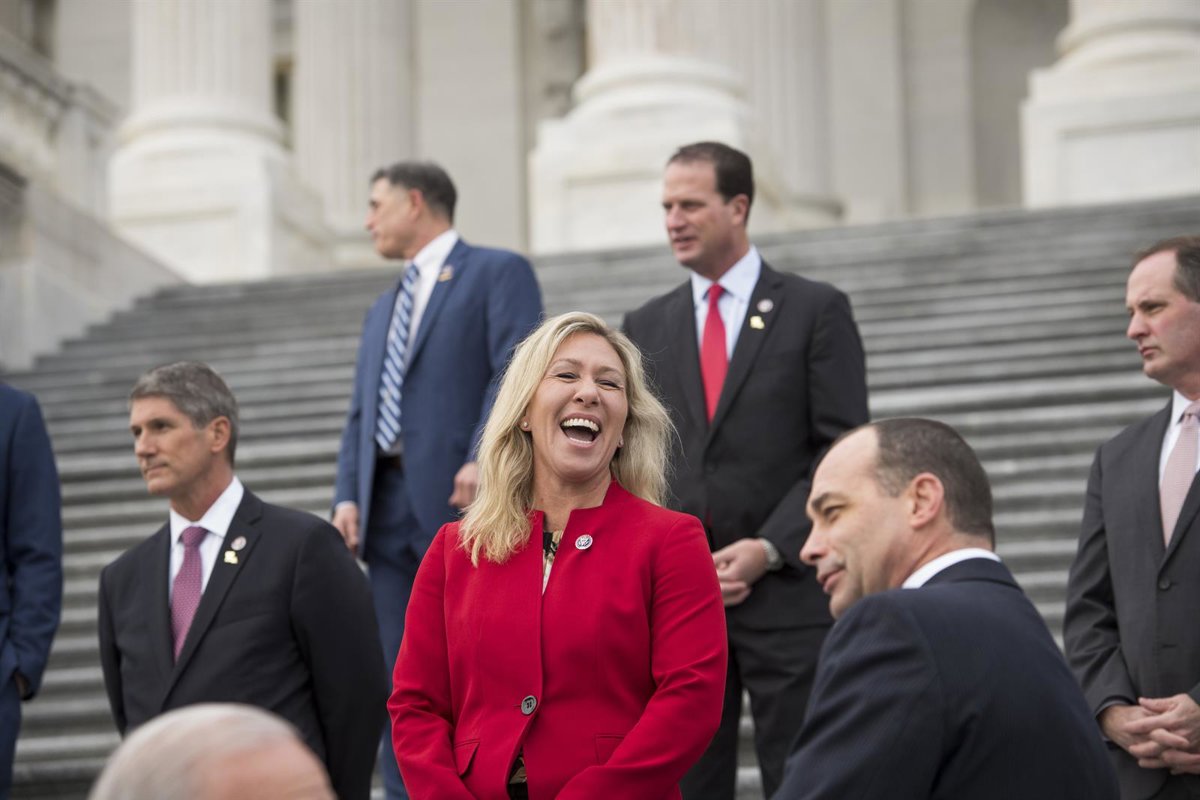 La representante republicana por Georgia, Marjorie Taylor Greene, en las escaleras del Capitolio, en Washington. - ROD LAMKEY - CNP / ZUMA PRESS / CONTACTOPHOTO