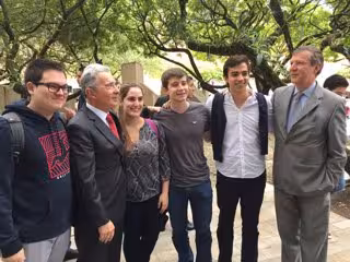 Un joven ha boicoteado este lunes un acto protagonizado por el ex presidente colombiano Álvaro Uribe en la Universidad de Medellín para pedirle que "se case" con la paz que negocian el Gobierno y las Fuerzas Armadas Revolucionarias de Colombia (FARC).