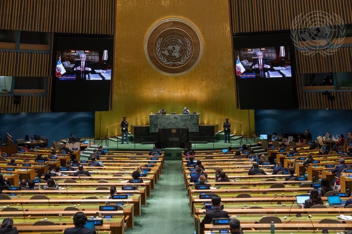 El presidente de Chile, Sebastián Piñera, durante su intervención telemática en la última sesión de la Asamblea General de Naciones Unidas - UN PHOTO