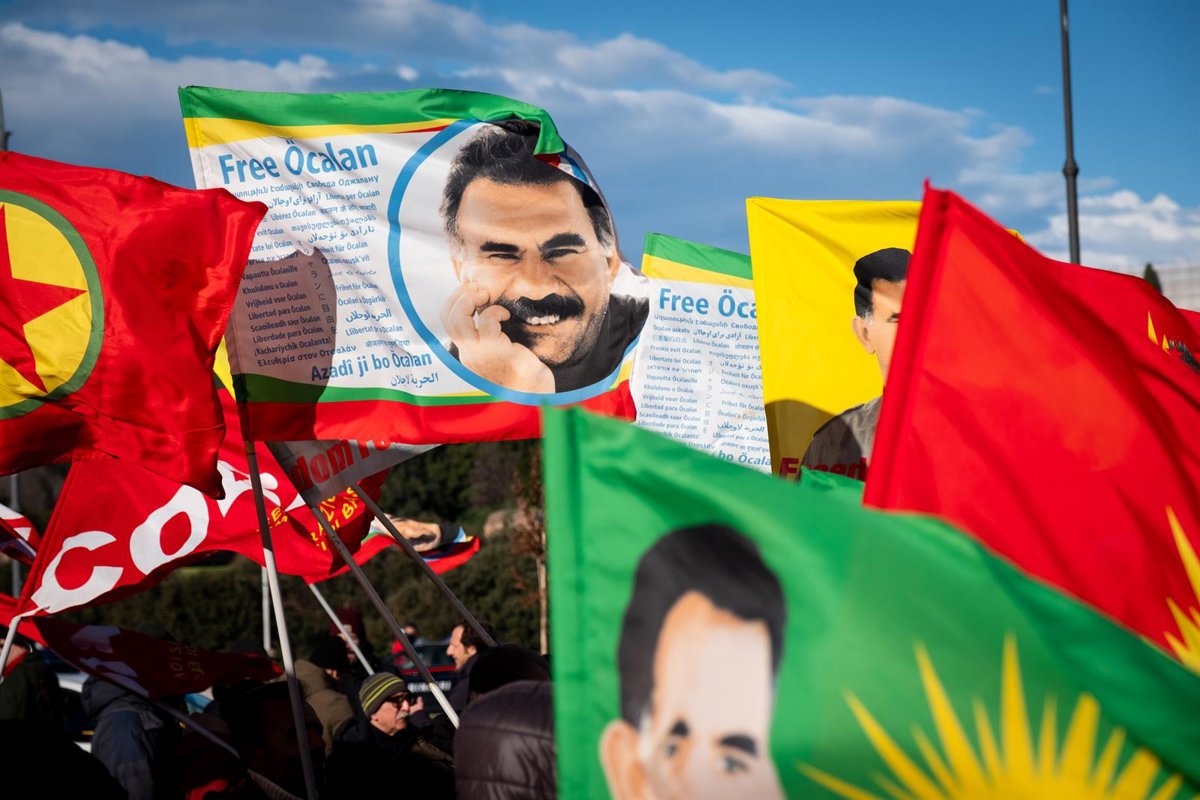 Archivo - Banderas con imágenes del encarcelado líder del Partido de los Trabajadores del Kurdistán (PKK), Abdulá Ocalan, durante un acto en la capital de Italia, Roma (archivo) - Marco Di Gianvito/ZUMA Press Wir / DPA - Archivo