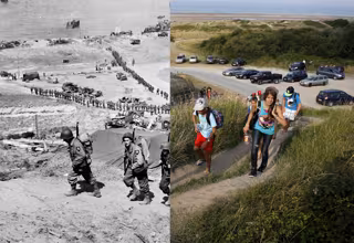 Más de siete décadas después, las históricas playas en las que se cambió el curso de la historia lucen de un modo muy distinto. De entregados soldados a felices turistas. De playas atestadas de barcos de guerra a familias jugando en el agua. De calles destruidas a calles comerciales. De blanco y negro a color.