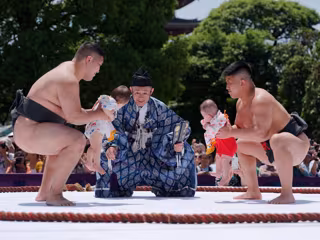 Luchadores de sumo abrazan a bebés durante un concurso en Japón - Europa Press/Contacto/Zhang Xiaoyu