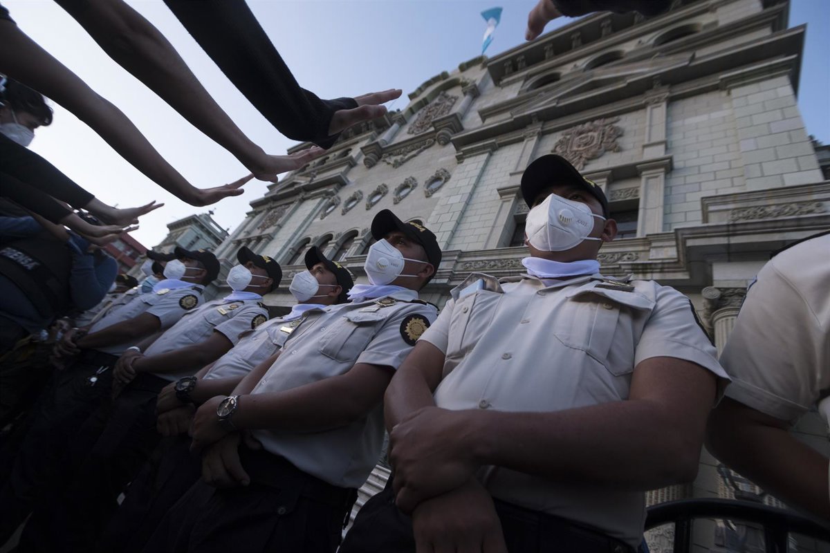 Agentes de la Policía de Guatemala con mascarilla frente al Palacio Nacional en un día de protestas. - 2020 GETTY IMAGES / GETTY IMAGES - Archivo