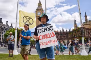 Protesta ecologista contra la ministra del Interior británica, Suella Braverman - Europa Press/Contacto/Vuk Valcic