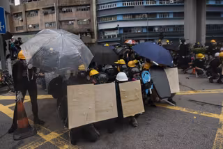 Manifestantes protegiéndose ante los agentes de la Policía de Hong Kong - Miguel Candela/SOPA Images via Z / DPA