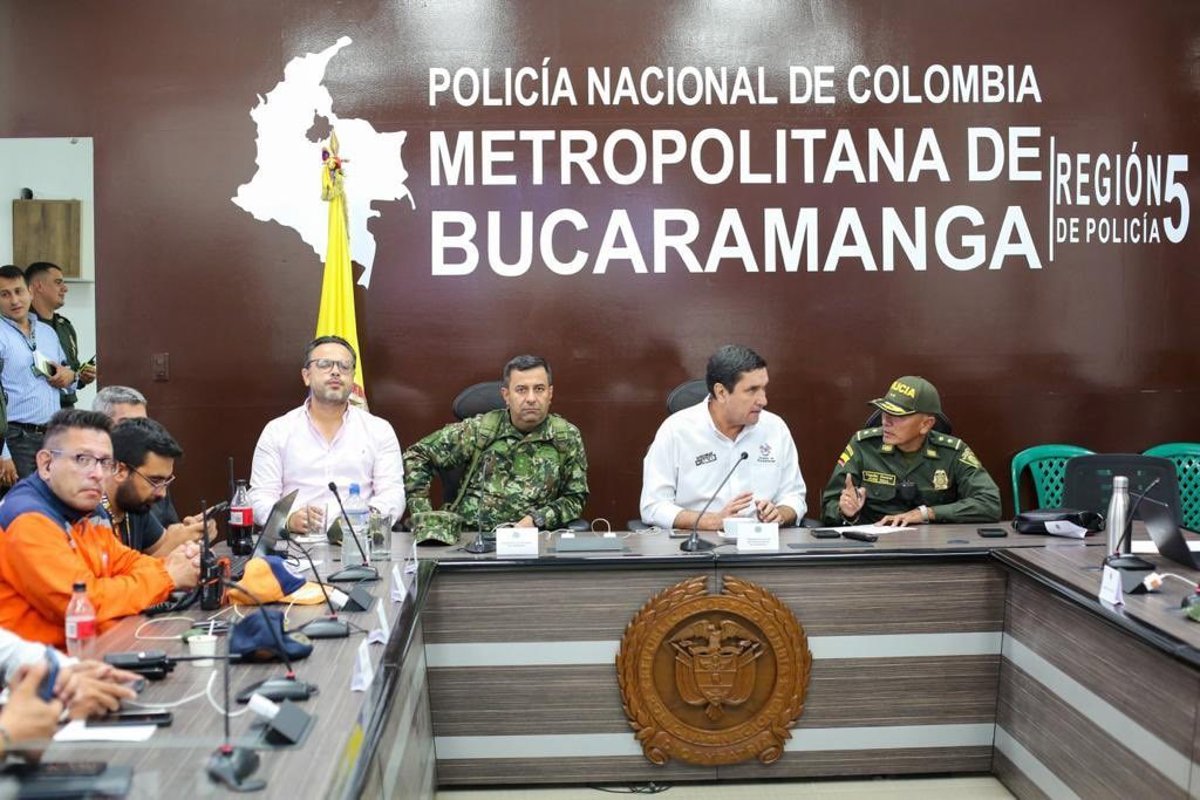 El alcalde de la ciudad colombiana de Bucaramba, Juan Carlos Cárdenas, reunido con la Policía, el Ejército y la Fiscalía - ALCALDÍA DE BUCARAMBA (COLOMBIA)