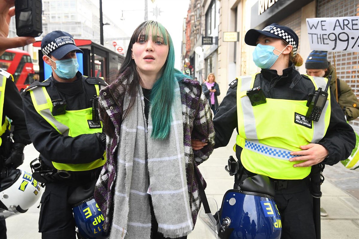 La Policía británica ha detenido a más de 150 personas en una protesta contra las restricciones adoptadas por la pandemia de COVID-19 registrada este sábado.
