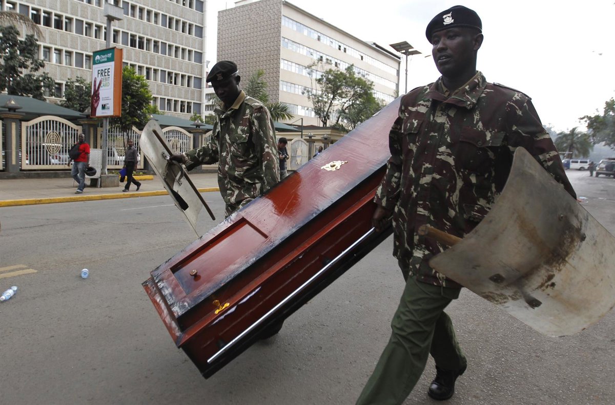 La Policía de Kenia ha usado gas lacrimógeno para dispersar a los manifestantes que este martes se han agolpado frente a la oficina del presidente, Uhuru Kenyatta, para protestar por el ataque perpetrado por milicianos islamistas de este fin de semana, en el que murieron 28 personas.