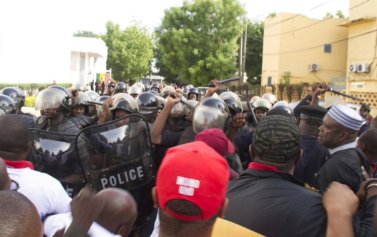 "Cientos de policías vinieron y rodearon la sede y vinieron y nos pegaron y nos dispararon gas lacrimógeno", ha relatado uno de los manifestantes, Alou Niang. Varias personas han sido ingresadas en hospitales debido a los disturbios.