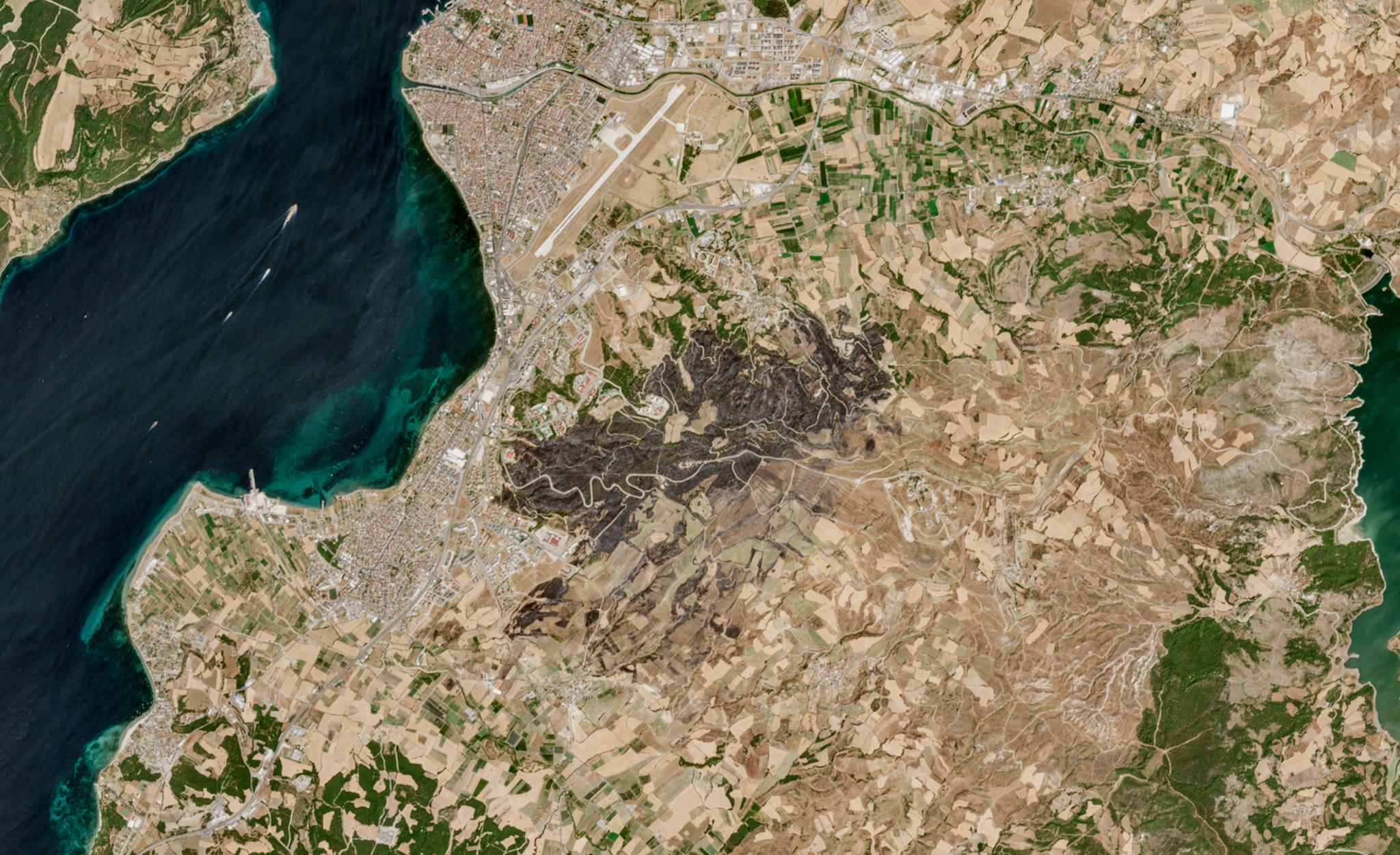 Área quemada incendios cerca de Canakkale, Turquía (imágenes de Copernicus Sentinel-2) - Satellite image ©2025 Maxar Technologies