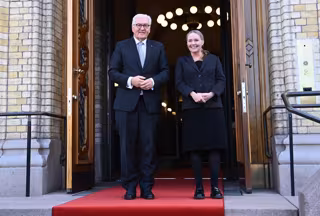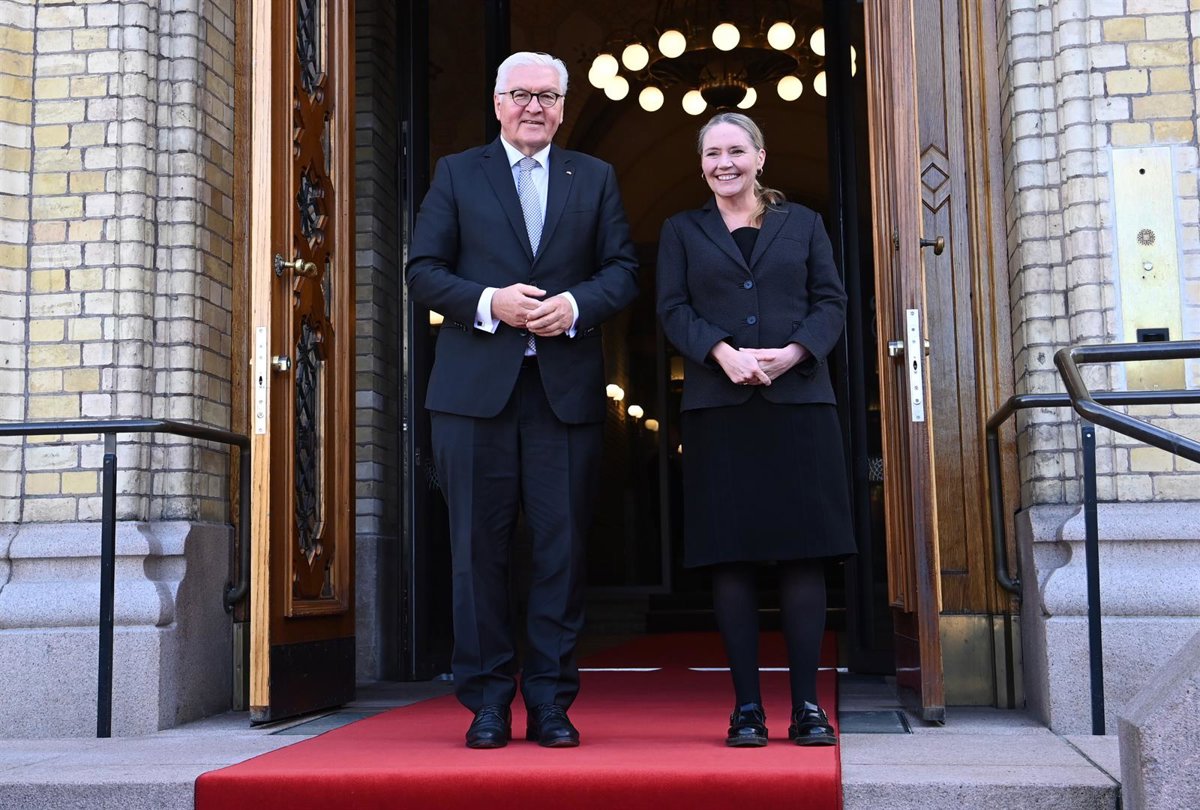 El presiedente de Noruega, Frank-Walter Steinmeier, y la presidenta del Parlamento, Eva Kristin Hansen - Britta Pedersen/dpa-Zentralbild/