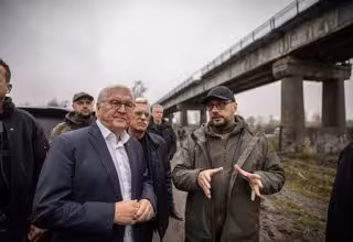 El presidente alemán Frank-Walter Steinmeier con funcionarios ucranianos - Michael Kappeler/dpa