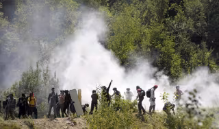 Miles de personas han participado en esta marcha, que comenzó de forma pacífica, contra la construcción de este túnel que, según los manifestantes, produciría un daño medioambiental irreparable.