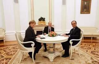 Los presidentes de Rusia y Francia, Vladimir Putin y François Hollande, respectivamente, y la canciller alemana, Angela Merkel, se han comprometido a trabajar en un plan conjunto para solucionar pacíficamente el conflicto en el este de Ucrania.